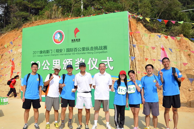 | 雄關(guān)漫道真如鐵,而今邁步從頭越 30公里縱走賽是組委會(huì)特別為業(yè)余組的選手開設(shè)的,分為團(tuán)隊(duì)賽和個(gè)人賽,終點(diǎn)設(shè)在翔安的準(zhǔn)提寺。我與同事施閩南、丁奕峰和賀曉娟組成了“閩南一隊(duì)”。 我們?cè)诔霭l(fā)處一直做著熱身,賽前不小心感冒的閩南向我們極力強(qiáng)調(diào)熱身的重要性,當(dāng)我們?cè)儐査纳眢w狀況,叫他比賽途中不要太勉強(qiáng)時(shí),他擦去額頭上的汗水,爽朗一笑:“我感覺都快好了!” 時(shí)間很快來到了8點(diǎn)09分,起跑處的槍聲、不遠(yuǎn)處的禮炮聲和選手們的歡呼激勵(lì)聲正式宣告了本次縱走賽的開始。朋友們,開始跑吧! 大鵬一日同風(fēng)起,扶搖直上九萬里 仿佛是感受到了選手們的沖勁和熱情,懸掛在高空中的太陽以更為熾熱的日光積極回應(yīng)著,讓整段賽道處處充滿了明媚與生氣。蓄勢(shì)待發(fā)的選手們沖出了起跑線,以習(xí)慣的節(jié)奏跑進(jìn)了屬于自己的偉大的一天。 過了1公里,大部隊(duì)由剛開始的熙熙攘攘變成了稀稀落落,賽道不再那么擁擠,選手們也開始進(jìn)入比賽狀態(tài)。路上我發(fā)現(xiàn)前方有對(duì)父子,那位父親正是在福建跑友圈子里很出名的“廈門赤腳”。人如其號(hào),他真的是赤腳比賽!當(dāng)有選手問他身邊的孩子是誰時(shí),赤腳就會(huì)自豪地答道:“我兒子,我?guī)麃韰⒓咏衲甑?span lang="EN-US">100公里縱走!” 莫愁前路無知己,天下誰人不識(shí)君 比賽很快就開始顯現(xiàn)出它的無情。天氣愈發(fā)炎熱,灼熱的陽光曬在選手身上,掠奪著大家的水分與能量,讓越來越多的選手停下奔跑的步伐。 縱走無情人有情。比賽艱辛,我們就苦中作樂;一人難熬,我們就彼此扶持。每每在我覺得能量枯竭腿如灌鉛的時(shí)候,就有一些人和事讓我又堅(jiān)持上一段距離:是與你擦肩而過時(shí)互道“加油”和“注意安全”的選手;是堅(jiān)守在各個(gè)執(zhí)勤點(diǎn)給你提供幫助的工作人員;是大聲朝我們加油打氣甚至手捧水果無償貢獻(xiàn)給我們的沿途村鎮(zhèn)的小孩;是陪你翻山越嶺在你抽筋時(shí)跟你說“躺下,我?guī)湍銐簤耗_”的素不相識(shí)的同伴。 賀曉娟在行進(jìn)中,遇到位第一次來大陸參加百公里縱走賽的臺(tái)灣同胞。這是個(gè)樂觀的人,很有激情,跑一段還會(huì)抒發(fā)下情感,甚至唱起了歌兒。在他前后跑著的人,都深受感染,雖然沒有跟著和歌,但這份精神的帶動(dòng),也讓他們跑得更起勁了。 到得前頭山腳盡,堂堂溪水出前村 在經(jīng)歷一個(gè)個(gè)轉(zhuǎn)角,一條條馬路,一座座村鎮(zhèn)后,我們終于來到了終點(diǎn)所在的準(zhǔn)提寺山腳下。最后1公里是條從頭至尾的上坡,路陡且長(zhǎng)。在身心俱疲卻還要奮力攀登時(shí),你才能更深刻地體會(huì)什么叫做“行百里者半九十”,然后發(fā)出“爬坡難,難于上青天”的喟嘆。然而我們別無退路,更不會(huì)畏縮。我們堅(jiān)定地邁出步伐,向終點(diǎn)做起了最后的漂亮的沖刺! 隊(duì)長(zhǎng)丁奕峰和賀曉娟跑在一處,因?yàn)檫@個(gè)項(xiàng)目,女生跑到終點(diǎn)是很重要的條件,所以他不斷在賀曉娟身旁鼓著勁,上坡艱難時(shí),還不時(shí)幫著推上一把。在他的支持下,賀曉娟成功地跑完了全程,還是集團(tuán)這些隊(duì)伍里,第一個(gè)到達(dá)的女生。而丁奕峰,心甘情愿地做她身后的助推器,比她遲了兩秒也依然樂呵呵的。 而當(dāng)我跨過終點(diǎn),我想到的是南宋詩人楊萬里的《桂源鋪》:萬山不許一溪奔,攔得溪聲日夜喧。到得前頭山腳盡,堂堂溪水出前村。 我還想到了一句格言:重要的不是你什么時(shí)候開始,而是開始之后就不要停下。 但我只想說:給我瓶水喝吧?。ㄏ髱Z股份  潘松溦)    象嶼股份兩支團(tuán)隊(duì)合影