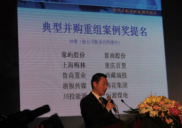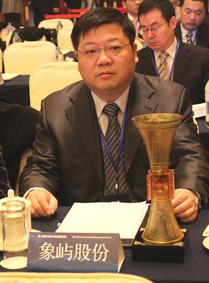 2011年12月19日,由上海證券交易所主辦、國務(wù)院國資委和經(jīng)濟(jì)合作與發(fā)展組織(OECD)共同支持的第十屆中國公司治理論壇在上海召開。中國證監(jiān)會(huì)主席郭樹清、上海市委副書記、市長韓正、上海市委常委、副市長屠光紹等領(lǐng)導(dǎo)出席論壇并給獲得公司治理專項(xiàng)獎(jiǎng)的各獲獎(jiǎng)上市公司頒獎(jiǎng)。象嶼集團(tuán)副總裁、象嶼股份副董事長陳方代表公司應(yīng)邀出席論壇。今年,象嶼股份因其在歷時(shí)2年多的破產(chǎn)重整和資產(chǎn)重組中的優(yōu)良表現(xiàn)和創(chuàng)新而獲得“典型并購重組案例獎(jiǎng)”提名。此獎(jiǎng)項(xiàng)代表著業(yè)界和上交所對(duì)于象嶼股份成功借殼上市的肯定和贊賞。