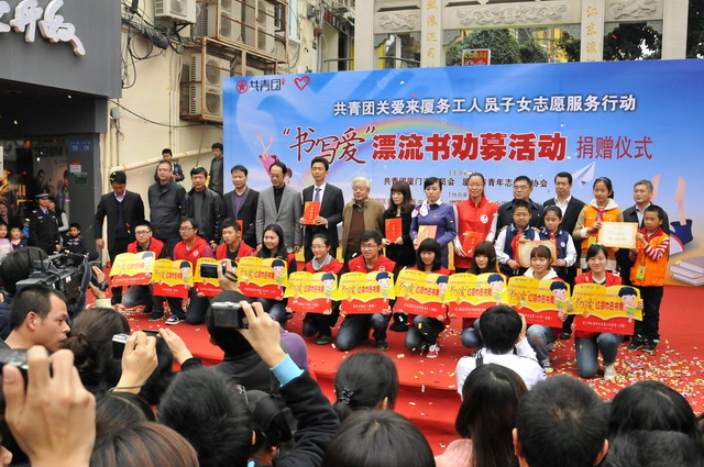 3月4日下午,在中山路步行街的活動(dòng)現(xiàn)場(chǎng),集團(tuán)的志愿者們將整理好的六大箱愛(ài)心圖書(shū)贈(zèng)送給了來(lái)廈務(wù)工人員子弟學(xué)校,并參加了現(xiàn)場(chǎng)的“書(shū)寫愛(ài)”漂流書(shū)勸募活動(dòng),向社會(huì)傳遞我們象嶼人的公益和愛(ài)心。