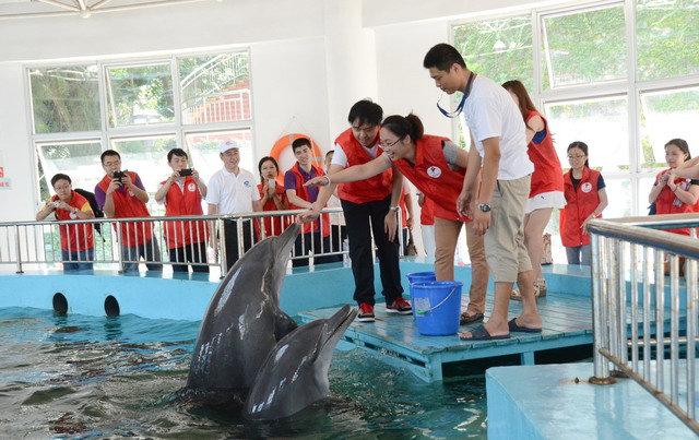 6月8日上午,主題為“建設海洋強國”的2013年世界海洋日暨全國海洋宣傳日活動在廈門公務碼頭廣場隆重舉行,象嶼集團“海豚之友”志愿者20人參與本次活動,并前往火燒嶼參觀中華白海豚救護基地。