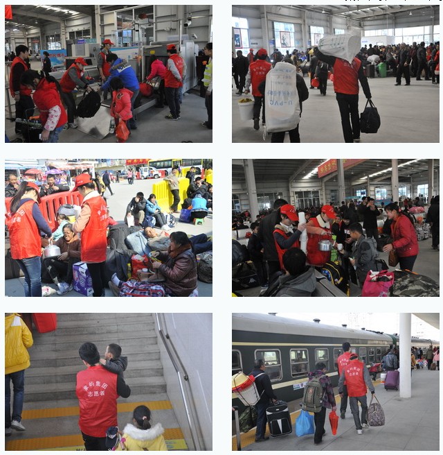 今年已是集團(tuán)第三年組織參加春運(yùn)服務(wù)。雖然是周末休息日,但我們的志愿者一早就到達(dá)服務(wù)區(qū)域:有的協(xié)助搭建志愿者暖洋洋服務(wù)站并駐點服務(wù),有的負(fù)責(zé)整個廣場及候車廳外圍的引導(dǎo)和搬運(yùn),有的負(fù)責(zé)協(xié)助候車廳安檢及廳內(nèi)服務(wù),還有的幫助那些攜幼提重的旅客順利登車。