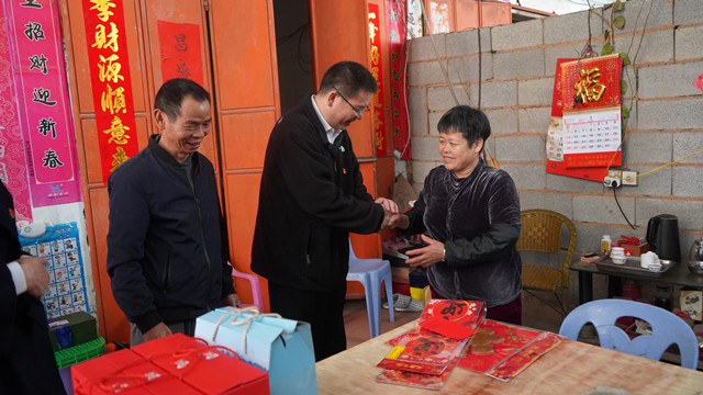 “大姐,最近身體還好嗎,家里怎么樣?”象嶼股份職能本部黨支部、象嶼物產(chǎn)、象嶼化工、象嶼礦業(yè)等12家黨支部書(shū)記、委員及黨員代表,帶著慰問(wèn)品及慰問(wèn)金等新春禮物,來(lái)到幫扶對(duì)象郭大姐家中“走親戚”,會(huì)講同安本地方言的黨員同志貼心地當(dāng)起了翻譯。象嶼股份副總經(jīng)理、象嶼化工總經(jīng)理張軍田同志專門為70多歲的結(jié)對(duì)對(duì)象卓大姐挑選了容易消化的面線等慰問(wèn)品。