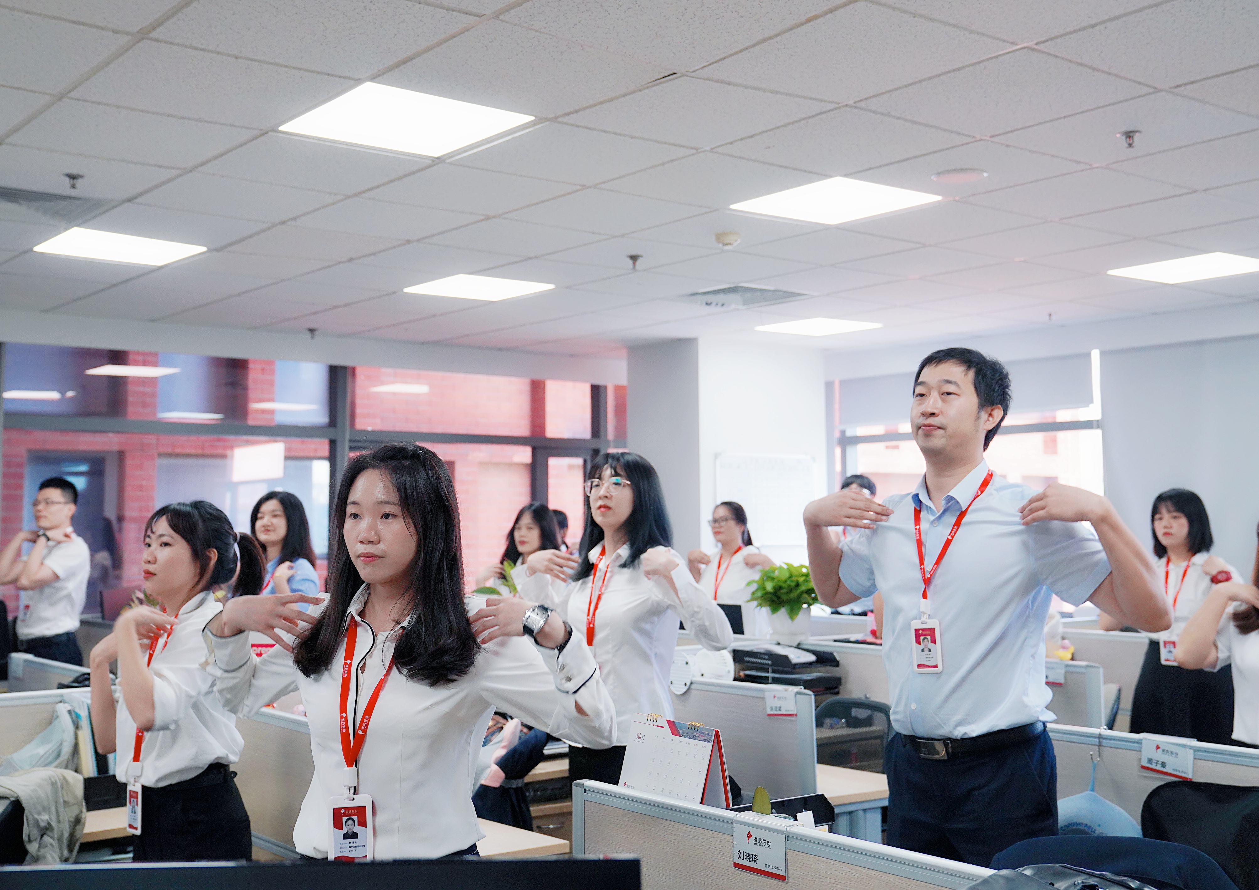 簡(jiǎn)單易學(xué)的工間操緩解了大家的工作壓力,放松了身心,起到了良好的鍛煉效果。通過(guò)短短幾分鐘的運(yùn)動(dòng)時(shí)間,調(diào)動(dòng)了大家參與全民健身的積極性,提振精氣神,讓大家“元?dú)鉂M滿”投入到后續(xù)的工作當(dāng)中!簡(jiǎn)單有效的健身方式,你還在等什么?趕緊一起來(lái)跳工間操吧!